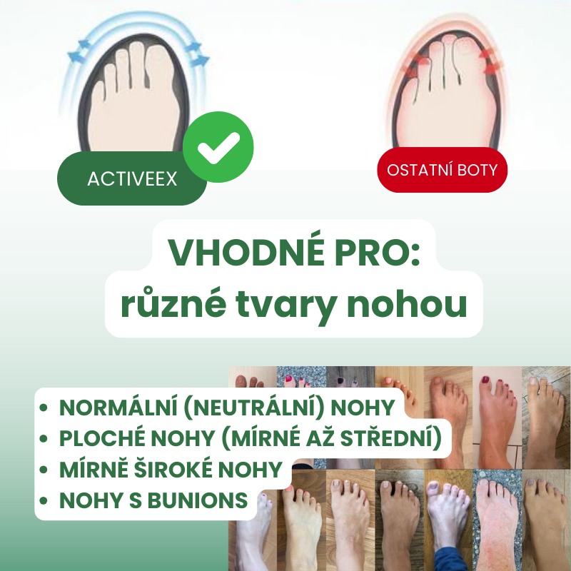 - Podpora klenby: poskytuje větší stabilitu a minimalizuje namáhání chodidla