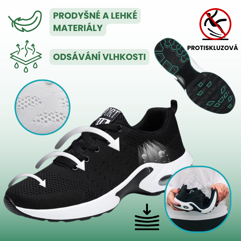 - Prodyšné a lehké materiály: Vyrobeno z pletených, lehkých a prodyšných materiálů, které udrží vaše nohy svěží a pohodlné po celý den.