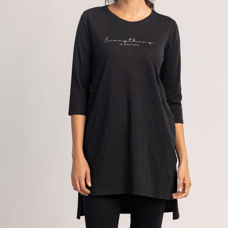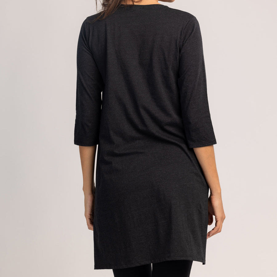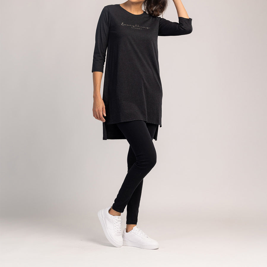 Tato tunika je všestranná: perfektně se hodí samostatně nebo k legínám či úzkým kalhotám, což umožňuje různé styly pro každou příležitost.
