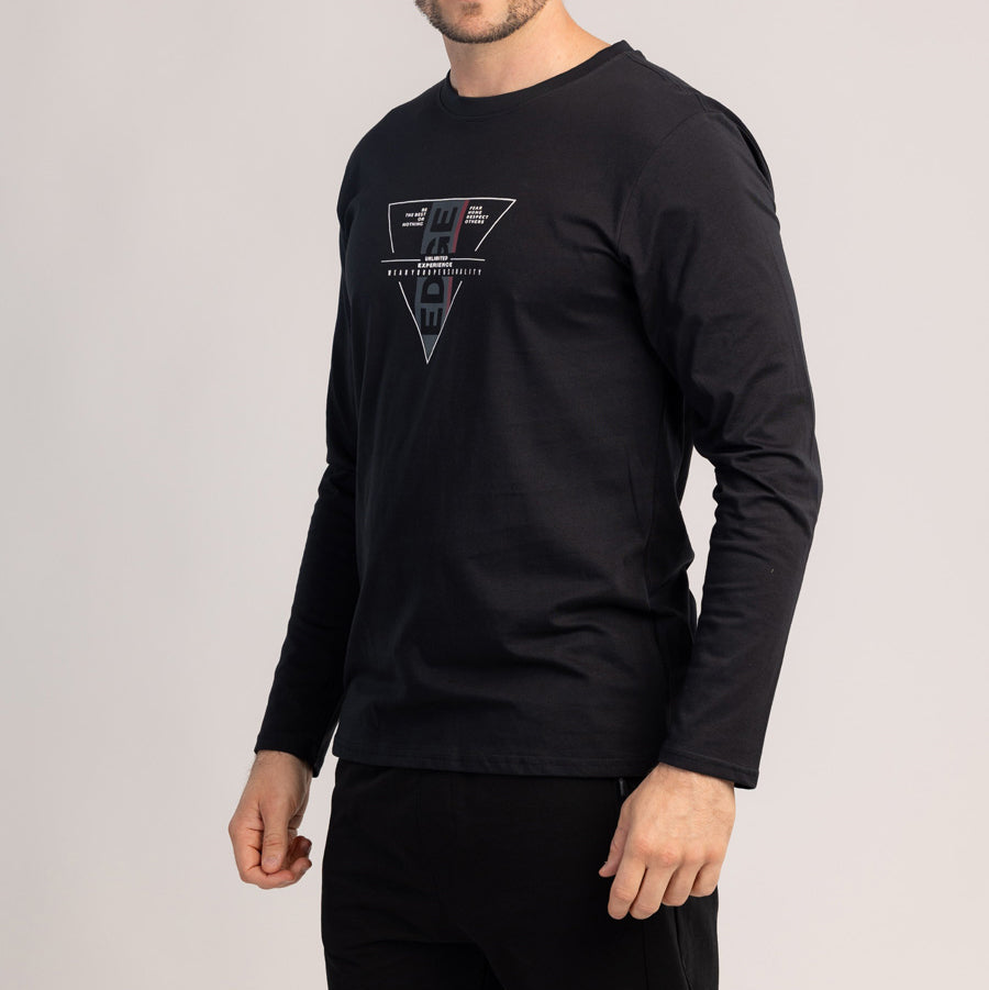 Bavlněné tričko s dlouhým rukávem, které kombinuje pohodlí a moderní vzhled pro každodenní nošení. Měkká a prodyšná tkanina je příjemná na dotek a klasický střih zajišťuje perfektní a neomezený střih.
