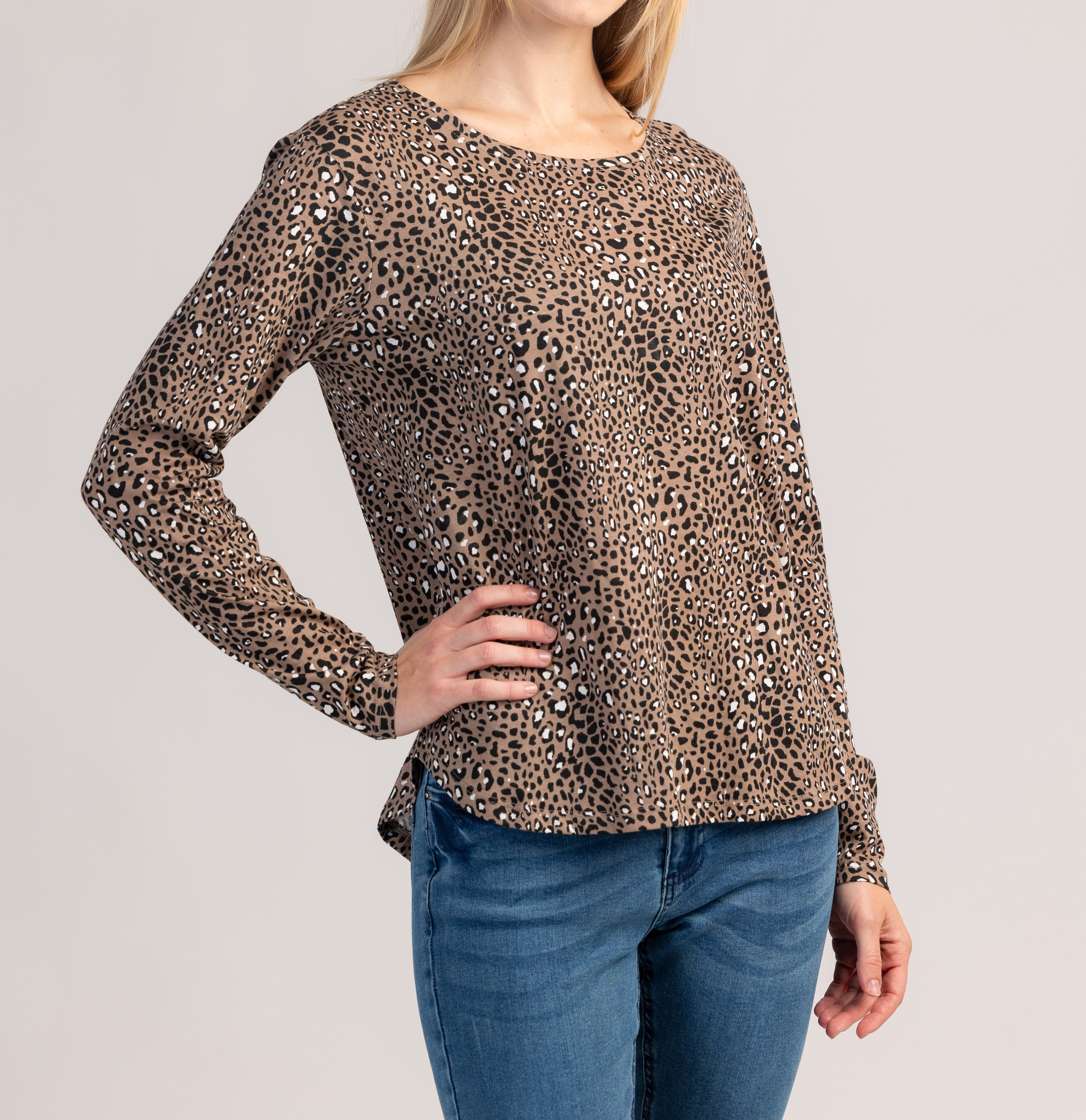 Bavlněné tričko s dlouhým rukávem, které kombinuje pohodlí a moderní vzhled pro každodenní nošení. Měkká a prodyšná tkanina příjemně obepíná pokožku a klasický střih zajišťuje perfektní a neomezený střih.